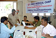 YMCA Visakhapatnam in association with Greater Visakha Doctors' Association conducts Free Health Check-up Camps at regular intervals at YMCA. Dr. G. Appa Rao, President and his team attend the Free Health Check-up Camps and conduct free testing of Blood Sugar, Blood Pressure, ECG ....etc. |